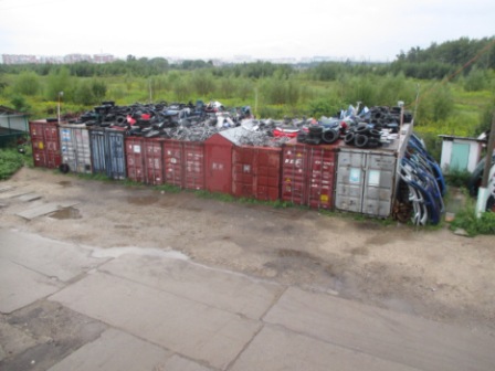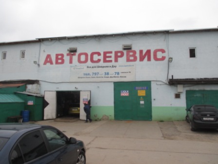 Проезжаем вдоль гаражей до 2-х этажного автосервиса