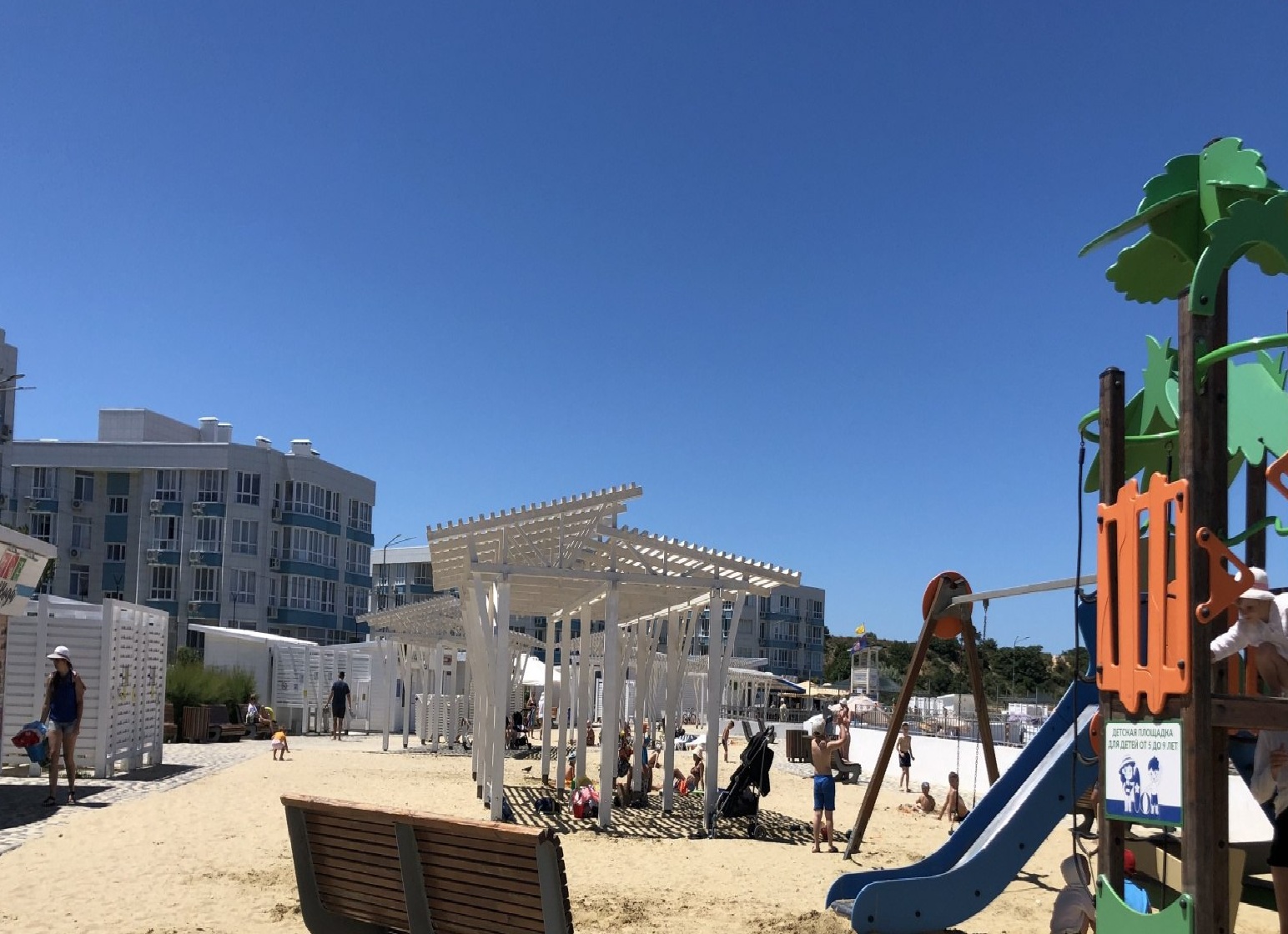 Пляж «Адмиральский» оборудован 2мя уровнями и оснащён: шезлонгами, зонтами, детскими и спортивной площадками, благоустроенными входами в море для людей с ограниченными возможностями.